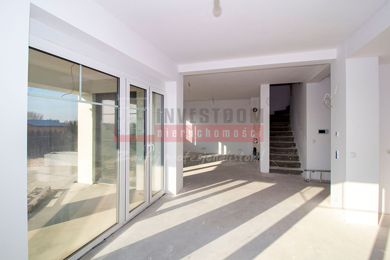 - niepodpiwniczony, piętrowy o powierzchni użytkowej z garażem - 184,67 m2 (powierzchnia całkowita 283,96), wybudowany w technologii tradycyjnej z cegłówki ceramicznej. Dach kryty dachówką ceramiczną. Stropy żelbetowe. Na parterze znajduje się przestronny pokój dzienny z jadalnią i częściowo zamkniętą kuchnią, spiżarnia, łazienka oraz gabinet.Na szczególną uwagę zasługuje duże przeszklenie w strefie dziennej.