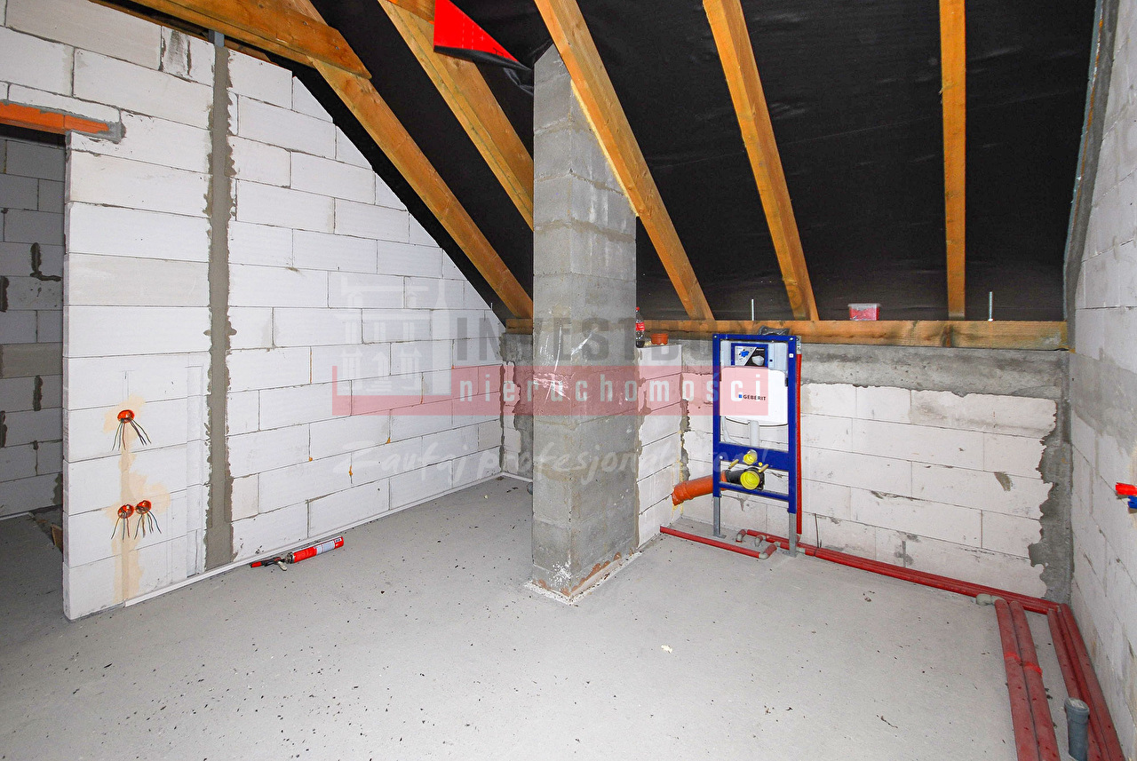 Proponuję Ci zakup domu w trakcie budowy. Budynek w stanie bardziej zaawansowanym niż stan surowy zamknięty ze względu na rozprowadzone instalacje.