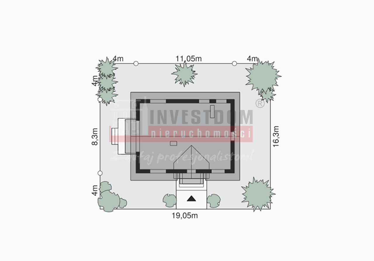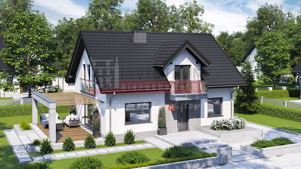 Posadowiony na działce o powierzchni 9,92 ara dom, wybudowano według projektu "Dom przy Alabastrowej 56".