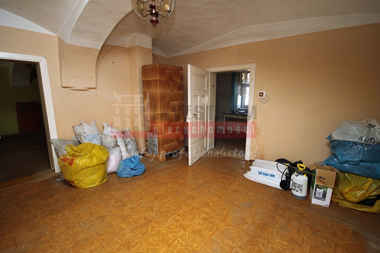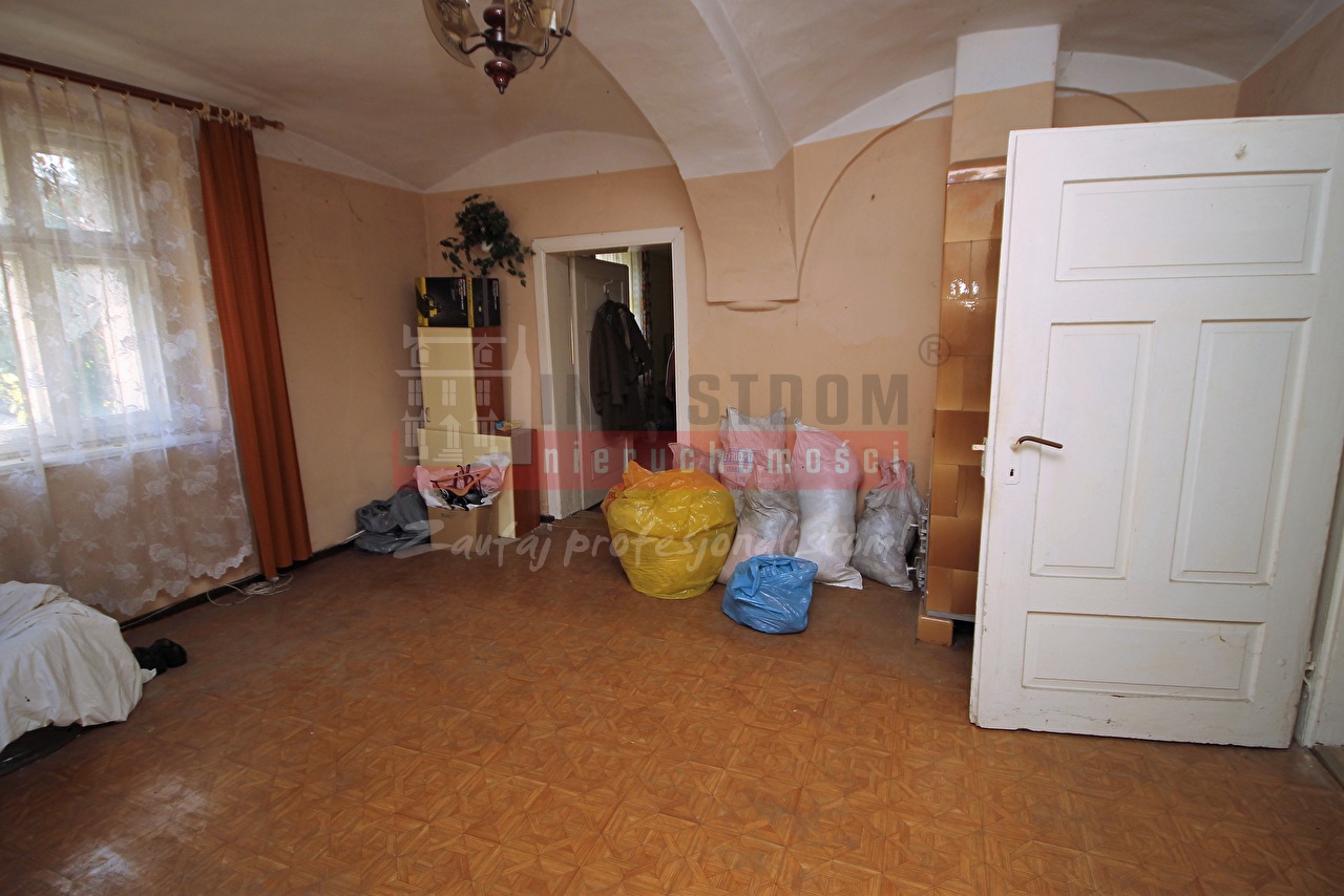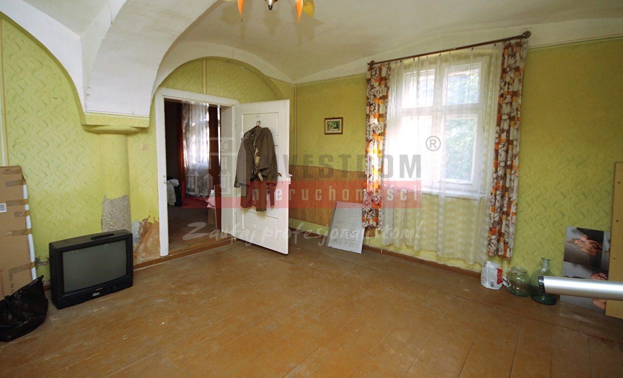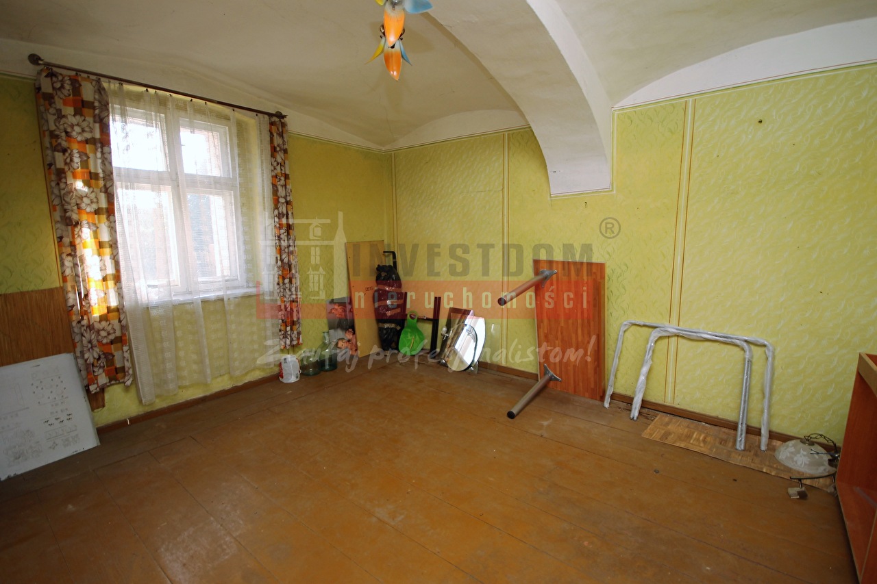 Budynek parterowy z poddaszem użytkowym wymagający kapitalnego remontu. Nieruchomość nie nadaje się do zamieszkania. Dom nie jest wolno stojący, boczna ściana przylega do budynku sąsiada.