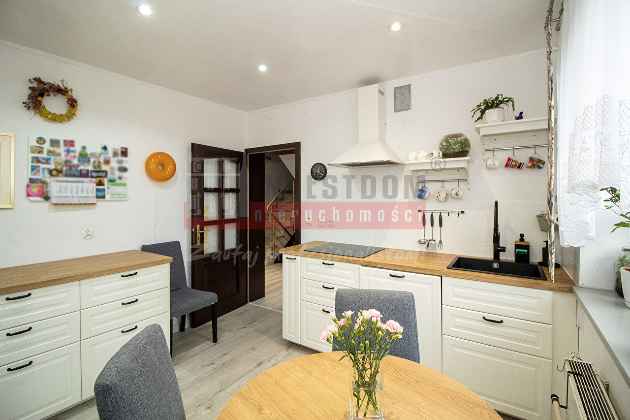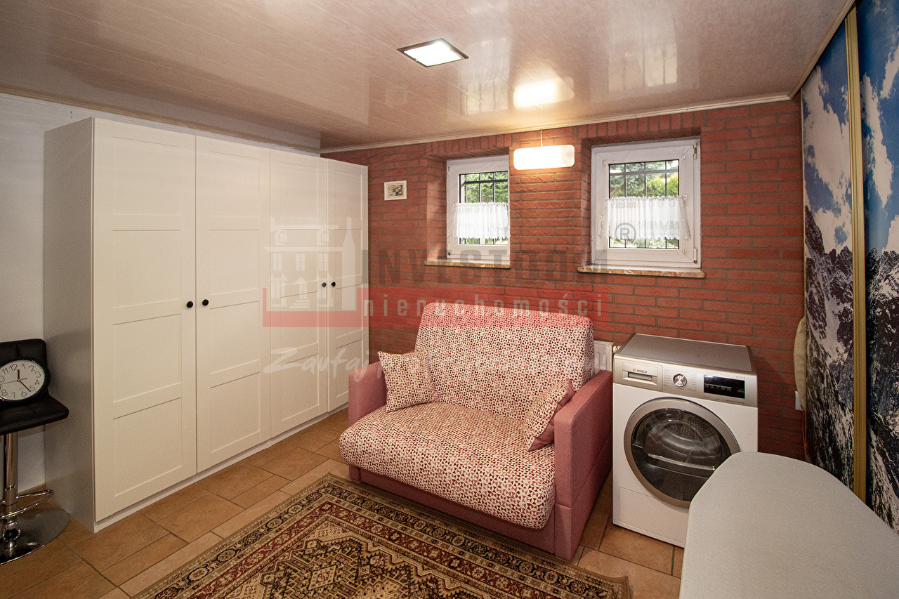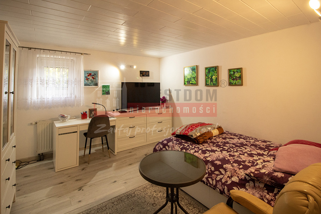 Dom, odświeżony około 5 lat temu, został zaprojektowany z myślą o wygodzie i funkcjonalności przez mr. inżyniera, który obecny był na każdym etapie budowy. Przestronne, dobrze doświetlone wnętrza dają poczucie komfortu i swobody. Na parterze znajduje się duży salon z wyjściem na ogród zimowy, pokój, kuchnia, łazienka