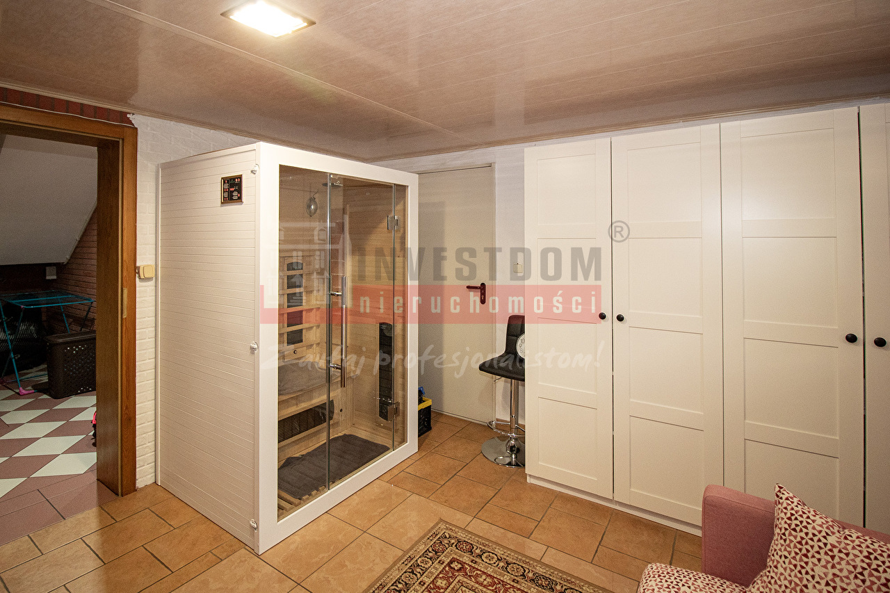 Na poziomie przyziemia znajdują się dwa pokoje, pomieszczenia gospodarcze, pomieszzcenie z sauną na podczerwień.