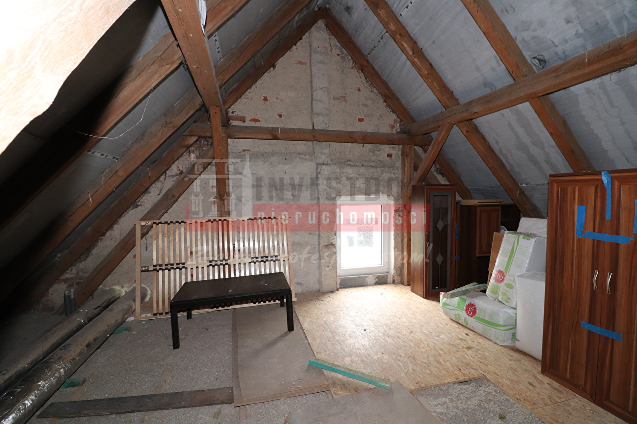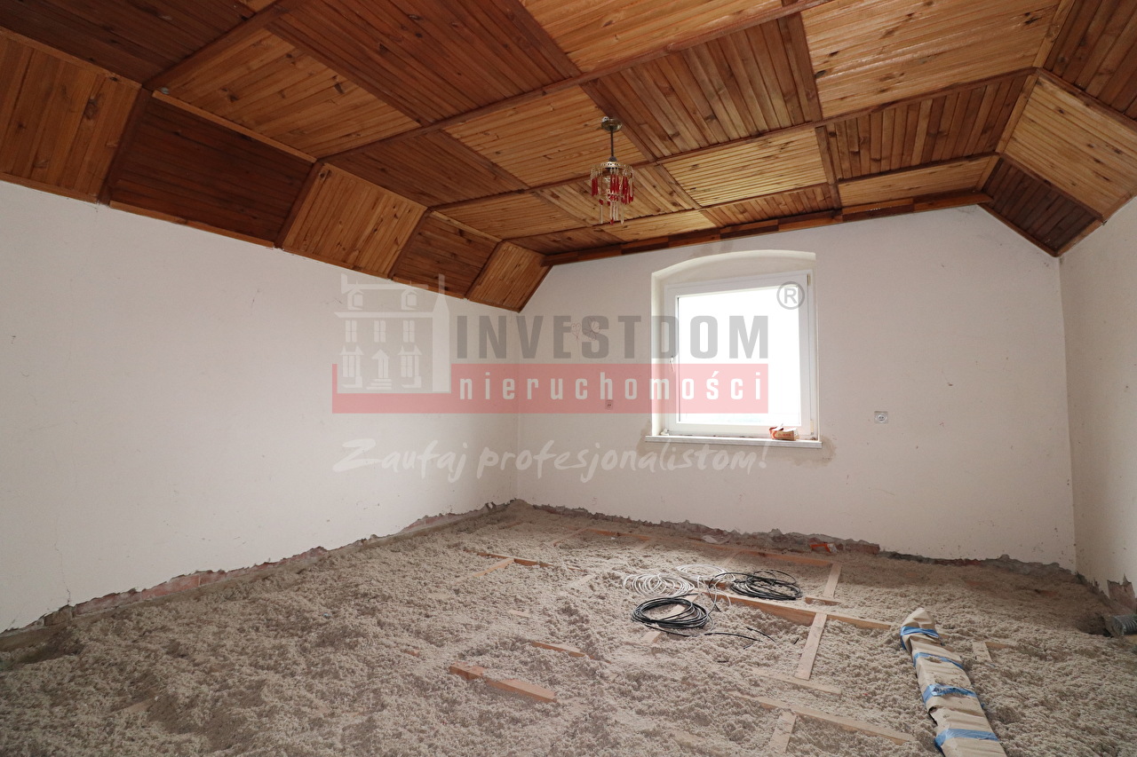 Dom murowany, podpiwniczony, parterowy z częściowo użytkowym poddaszem, kryty blachodachówką. Na parterze salon z aneksem kuchennym, 2 pokoje, łazienka i pomieszczenie gospodarcze. Na poddaszu pokój plus strych z możliwością łatwej adaptacji na jeszcze jeden pokój i łazienkę (media wyprowadzone ponad strop). Łączna powierzchnia użytkowa parteru wynosi 97 m2. Budynek zostal poddany kompleksowej termomodernizacji: nowe okna, drzwi wejściowe, docieplony strop nad piwnicą oraz ocieplone podłogi na gruncie. Strop ocieplony celulozą. Ogrzewanie oraz ciepła woda z pompy ciepła, system odzyskiwania ciepła (rekuperacja). Nowe instalacje - wodna, kanalizacyjna oraz elektryczna. Na całym parterze ogrzewanie podłogowe. Bezpośrednio do budynku przylega garaż o powierzchni ok. 20 m2. Działka w kształcie zbliżonym do kwadratu, równa, sucha i zadbana, o powierzchni 964 m2. Cicha, spokojna okolica, przyjazne sąsiedztwo. Dobry dojazd do Grodkowa - samochodem ok. 7 min do Rynku. Polecamy!