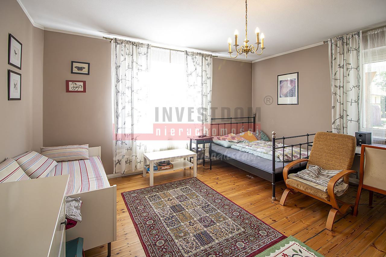Posiadłość jest ogrodzona i zadrzewiona dorodnymi drzewami. Na działce znajduje się również sad z drzewkami owocowymi. Dom jest oddalony od drogi, dodatkowo sąsiaduje z parkiem, dzięki czemu możesz się cieszyć prywatnością, ciszą i spokojem. To idealne miejsce na odpoczynek, gdzie możesz się zrelaksować popijając poranną kawą lub spędzać wieczory pod gwiazdami. Otwarta przestrzeń zapewnia doskonały widok na otaczającą przyrodę. Na posesji znajduje się garaż i stara, klimatyczna stajnia. Wjazd na działkę przez bramę na pilota, natomiast do posesji prowadzi droga asfaltowa.