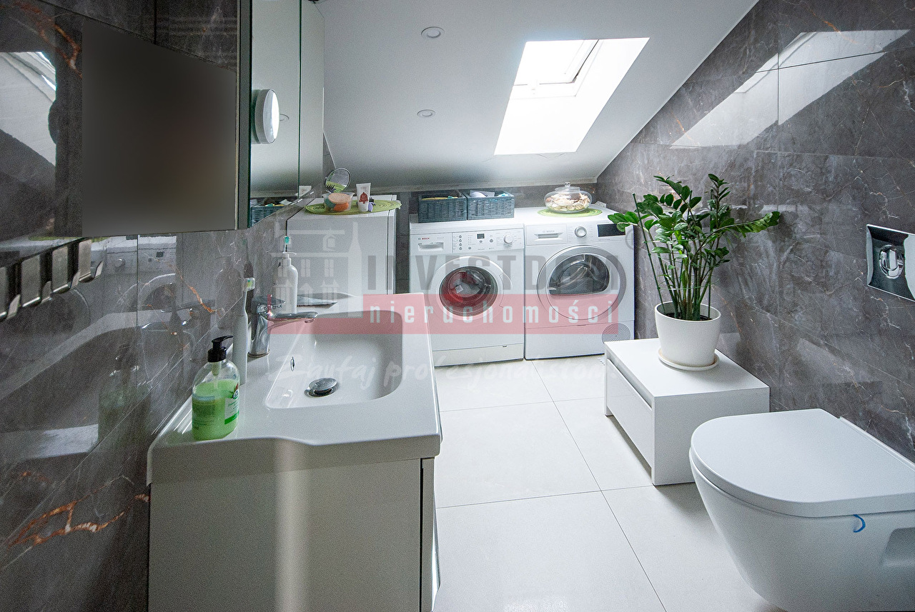 - łazienka z kabiną prysznicową , WC, pralka i suszarka