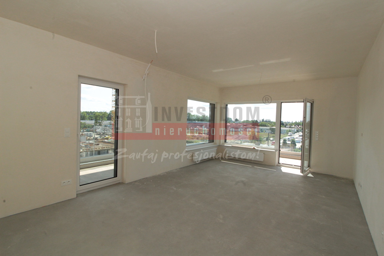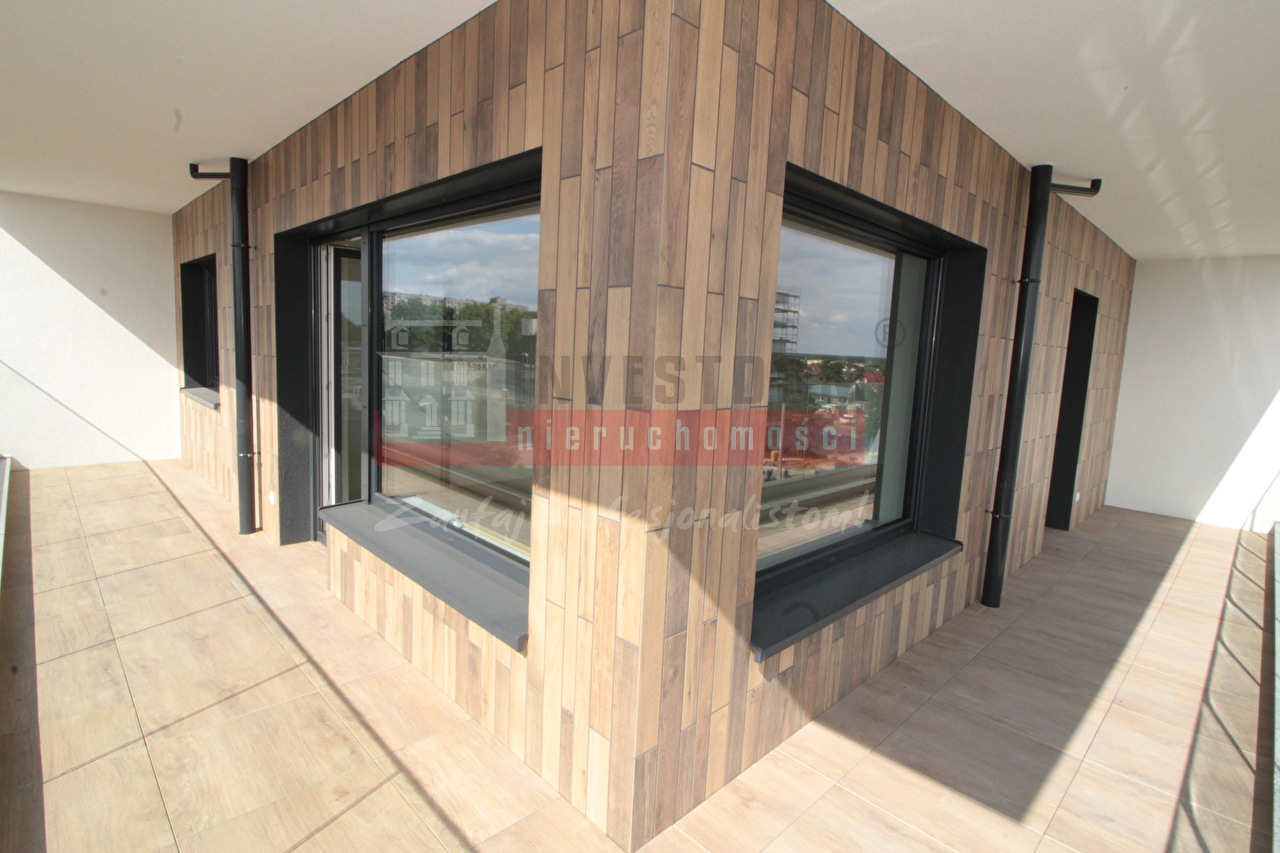 salon z aneksem kuchennym (pow. 30,01m2), dwa oddzielne pokoje (pow. 10,88m2; 11,87m2), łazienka (pow. 5,43m2), wc (pow. 2,17m2), przedpokój (pow. 9,45m2), balkon (pow. 24,62 m2).