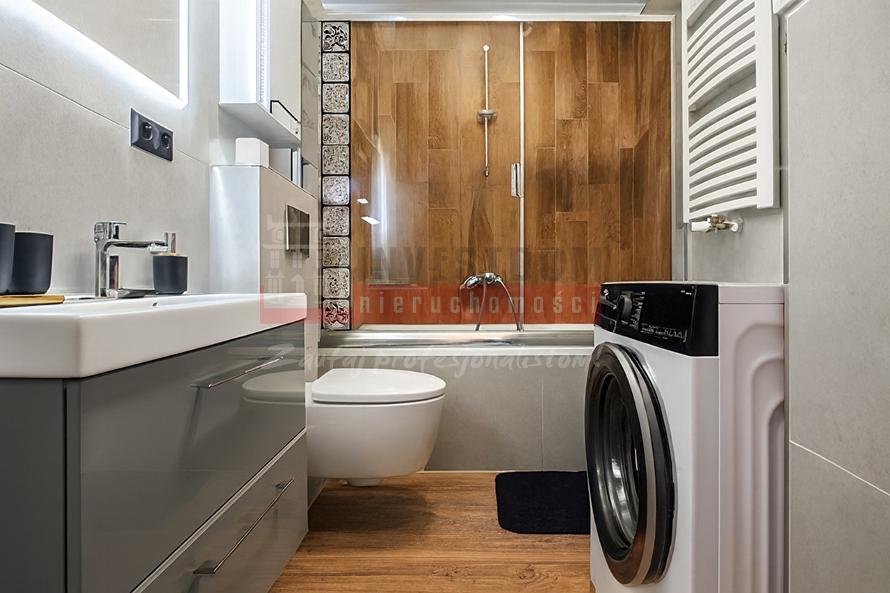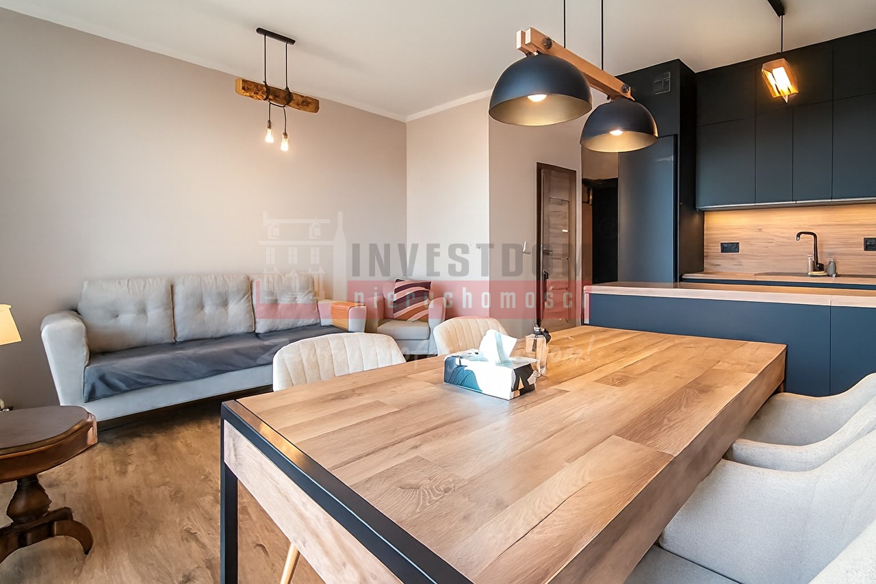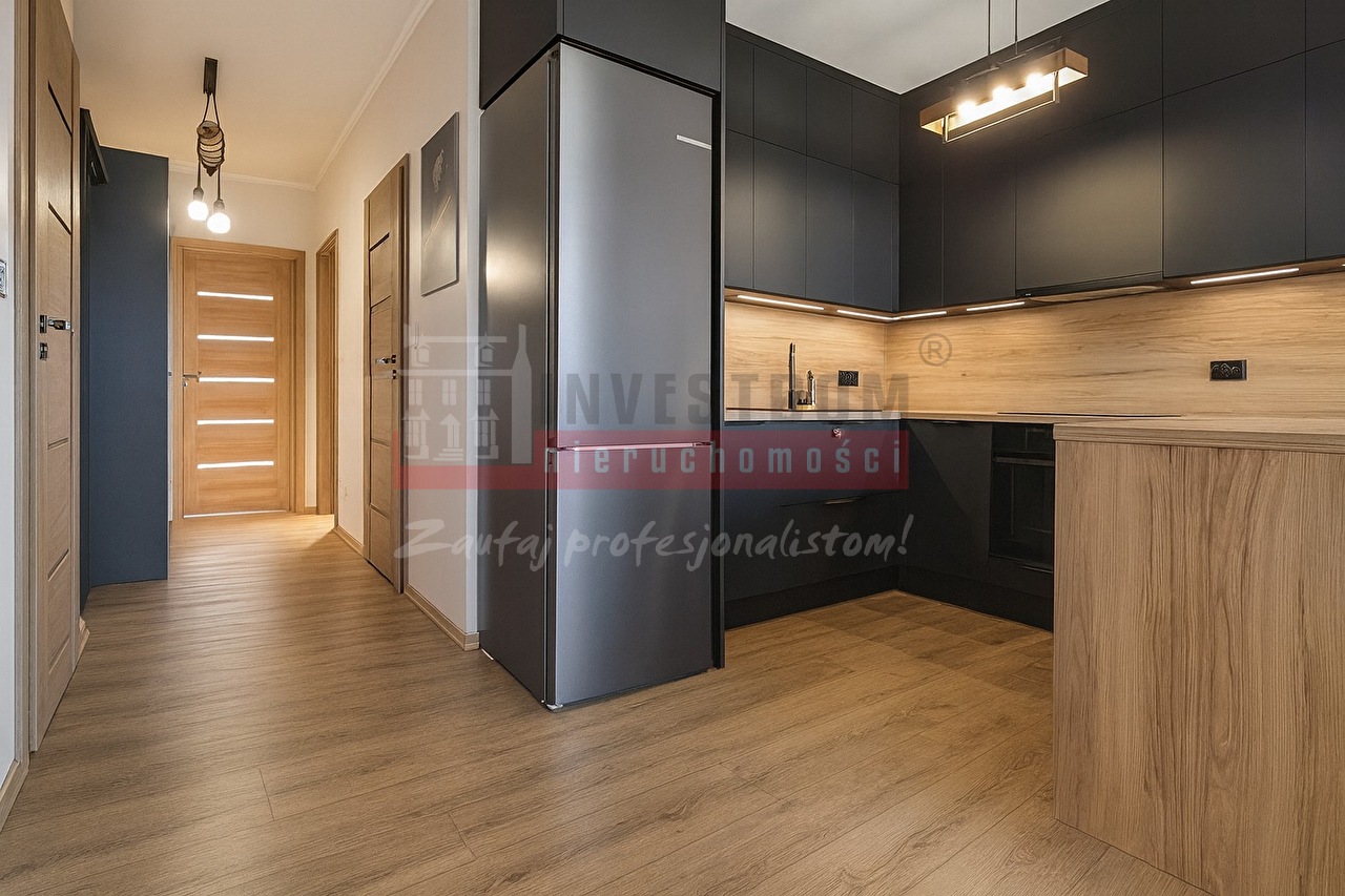 - nowoczesne meble kuchenne i sprzęt AGD (piekarnik, płyta indukcyjna, zmywarka, okap, lodówko-zamrażarka)