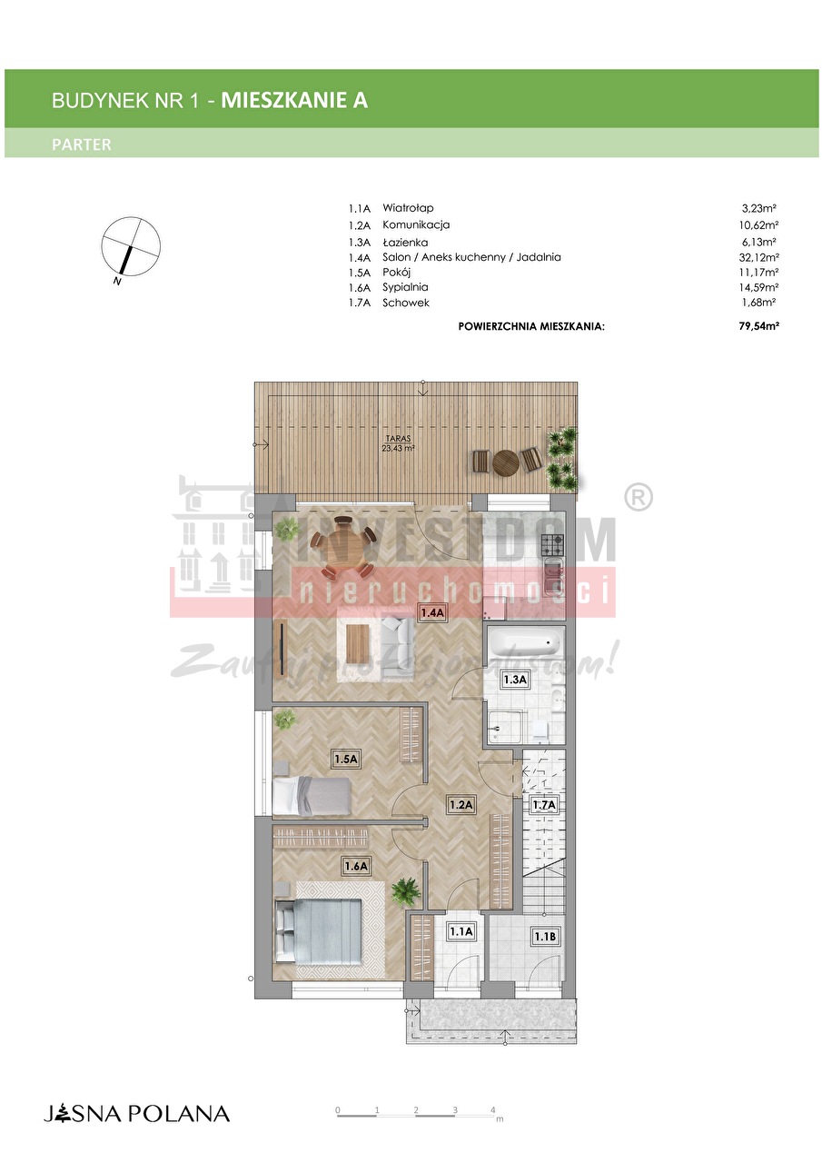Jasna Polana - to kompleks czterech budynków czterolokalowych zlokalizowanych w Zawadzie. Oferujemy do sprzedania mieszkania na parterze o powierzchni 79,54 m2 z ogródkiem lub mieszkania na piętrze o powierzchni 84,01 m2 z tarasem.Dzięki dużym przeszkleniom wszystkie mieszkania są jasne, słoneczne i z widokiem na piękny las. Wnętrze lokalu mieszkalnego prezentuje sprawdzone rozwiązania funkcjonalne, gwarantujące użytkownikom maksimum wygody. Budynki charakteryzuje przemyślana architektura oraz funkcjonalność zapewniające komfort i wygodę przyszłych mieszkańców. Apartament oddawany będzie w stanie deweloperskim. W trosce o wygodę przyszłych właścicieli, budynek zostanie wykonany z wykorzystaniem najnowszych energooszczędnych technologii. Mieszkanie wyposażone będzie w okna pięciokomorowe z roletami zewnętrznymi oraz granitowymi parapetami, od strony południowej przeszklenia obsługiwać będą żaluzje fasadowe. Osiedle położone jest w cichej i spokojnej okolicy. Otaczająca osiedle zieleń pozwoli mieszkańcom cieszyć się życiem z dala od zgiełku miasta, blisko natury i terenów zachęcających do rekreacji na świeżym powietrzu. W trosce o minimalizację kosztów utrzymania, zamontowana została pompa ciepła i istenieje mozliwość zamontowania paneli fotowoltaicznych na indywidualne życzenie Klienta i za dodatkową opłatą.