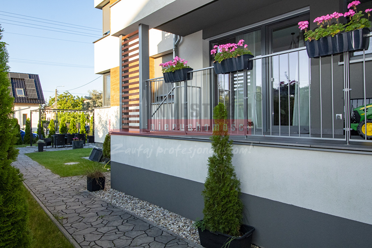 Mieszkanie posiada balkon z zejściem na duży (315m2) ogród z tarasem i pergolą. Otoczony zielenią będziesz mógł więc odpocząć po pracy i miło spędzać czas z bliskimi. Z ogrodu możesz wyjść przez furtkę bezpośrednio na chodnik. Do lokalu przynależy prywatne miejsce postojowe oraz spora (prawie 15m2) piwnica, w której wykonano przyłącze wodne i elektryczne w celu podłączenia pralki i suszarki. Ponadto zawieszono też półki, które ułatwią Ci przechowywanie rzeczy.