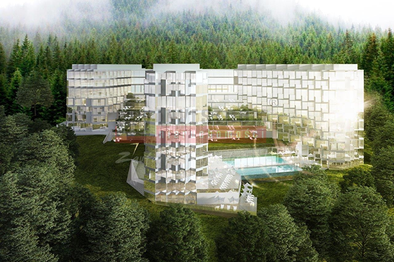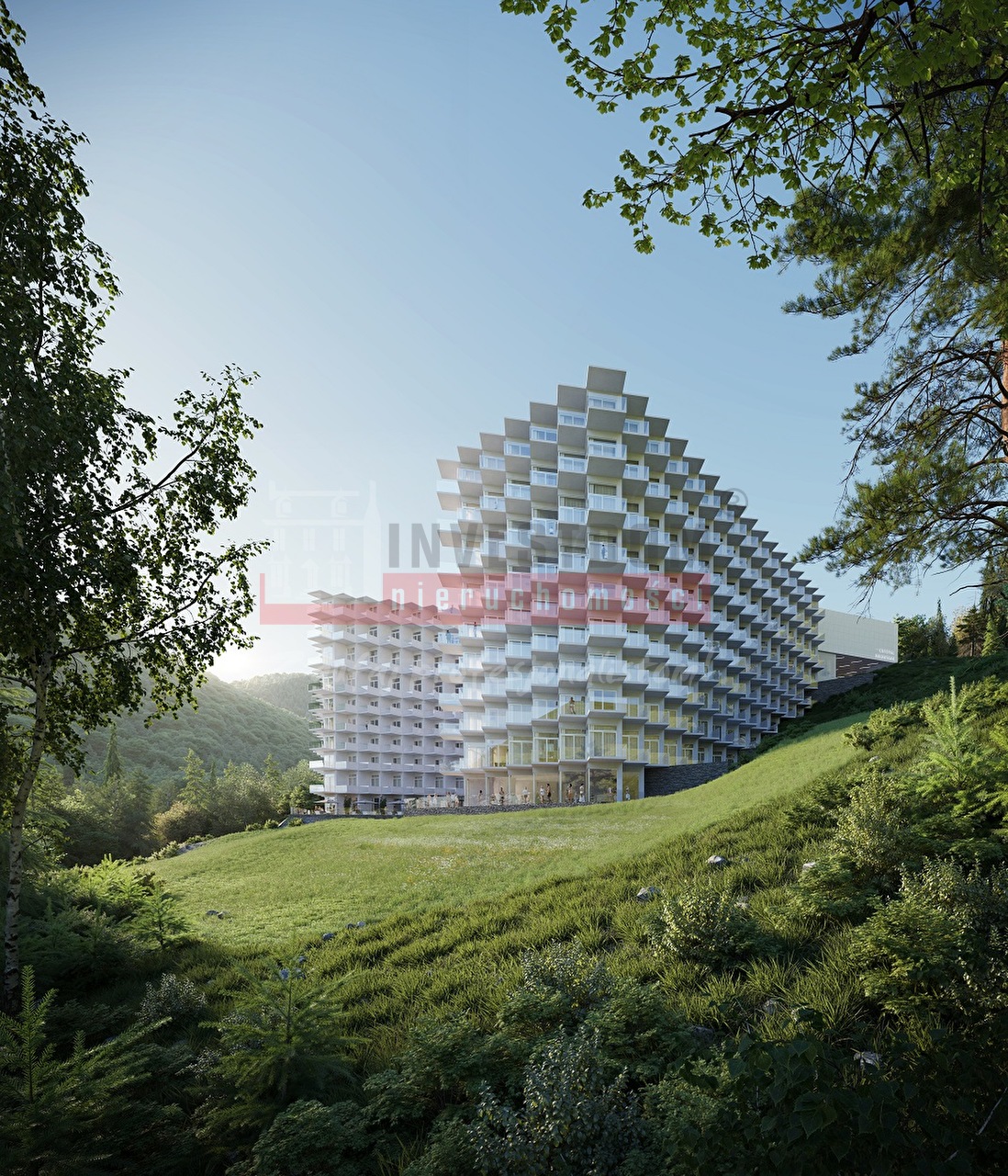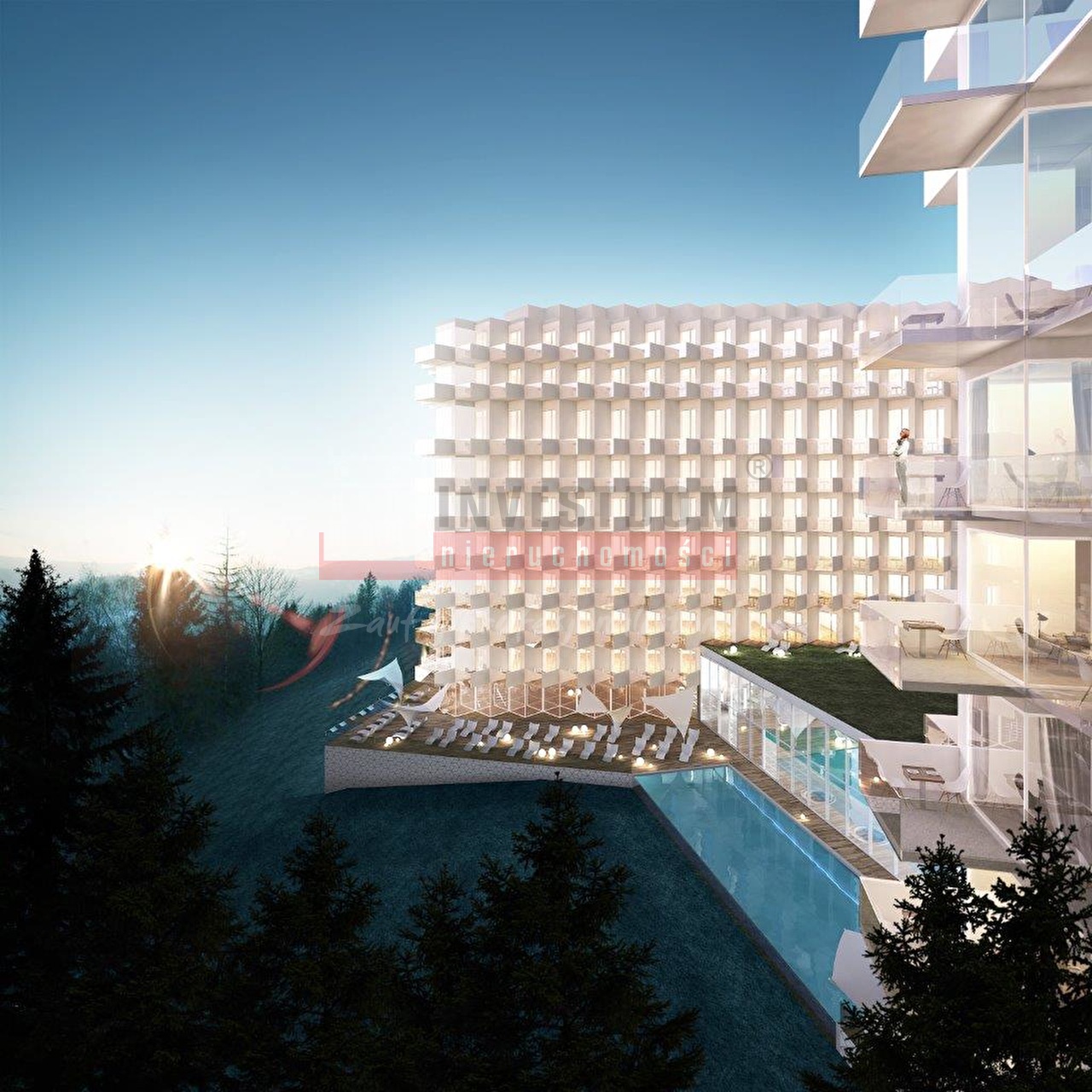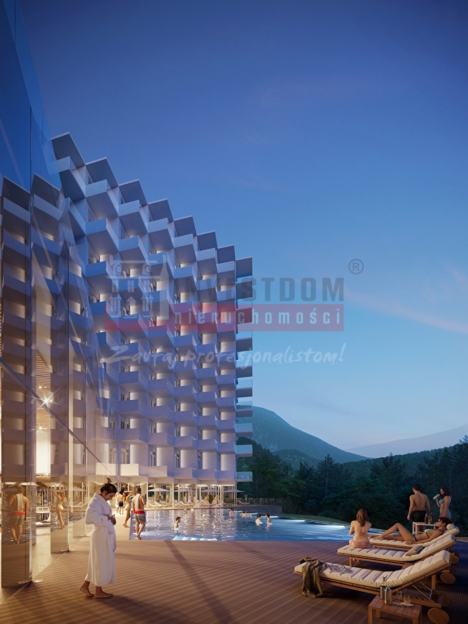 Crystal Mountain Resort. Idealne połączenie niezależności typowej dla apartamentów z komfortem 5-gwiazdkowego hotelu. Kompleks składa się z jedenastu kondygnacji w których zaprojektowano 541 pokoi i apartamentów hotelowych. Są to lokale jedno,dwu i wielo - pokojowe o powierzchni od 25 do 50 m2. Oferta dotyczy apartamentu o pow. 27,08 m2. Apartamenty posiadają własne miejsca parkingowe, tarasy lub balkony widokowe oraz część z nich powierzchnię ogrodową. Każdy wyposażony jest we własne SPA z deszczownicą, sauną parową, aromaterapią, jacuzzi oraz biczami wodnymi, kuchnia w zabudowie ze sprzętem AGD. To wszystko ma zapewnić komfort, wygodę, relaks i wypoczynek.