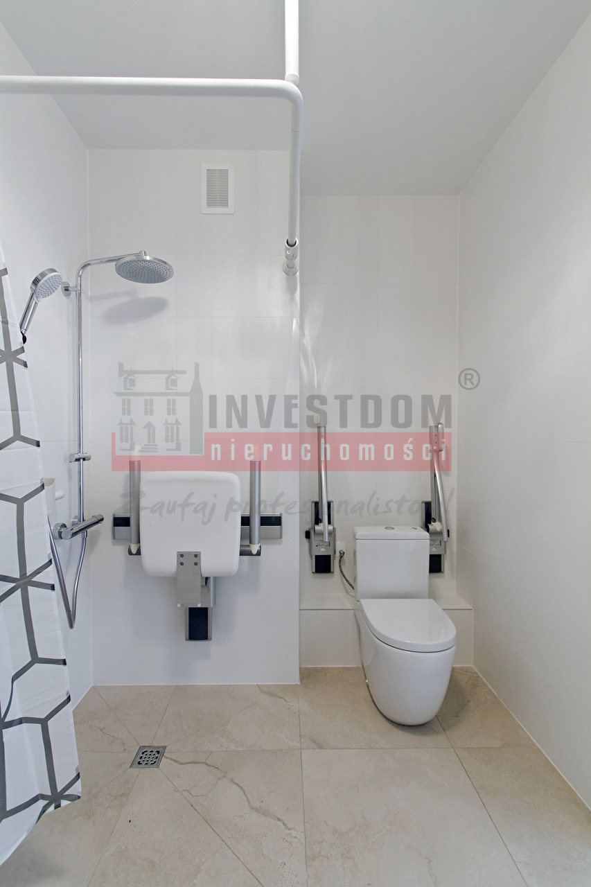 - poziomo i pionowo regulowane siedziska prysznicowe, odchylane ramiona/uchwyty do toalety oraz poręcze prysznicowe zapewniające podparcie, regulacja wysokości umywalki, bateria prysznicowa zabezpieczona termicznie z termostatem,