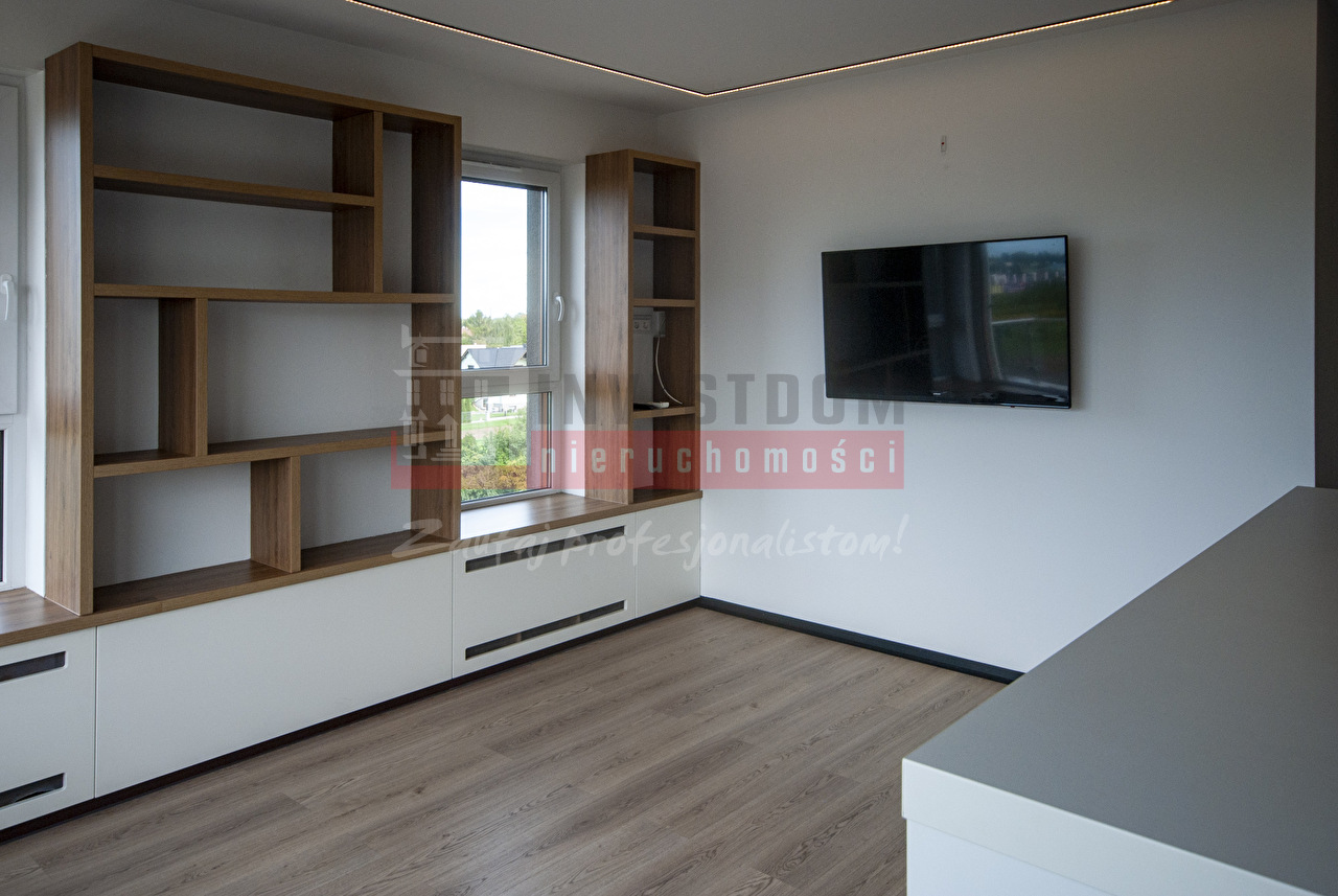 - salon z aneksem kuchennym z wyjściem na balkon.